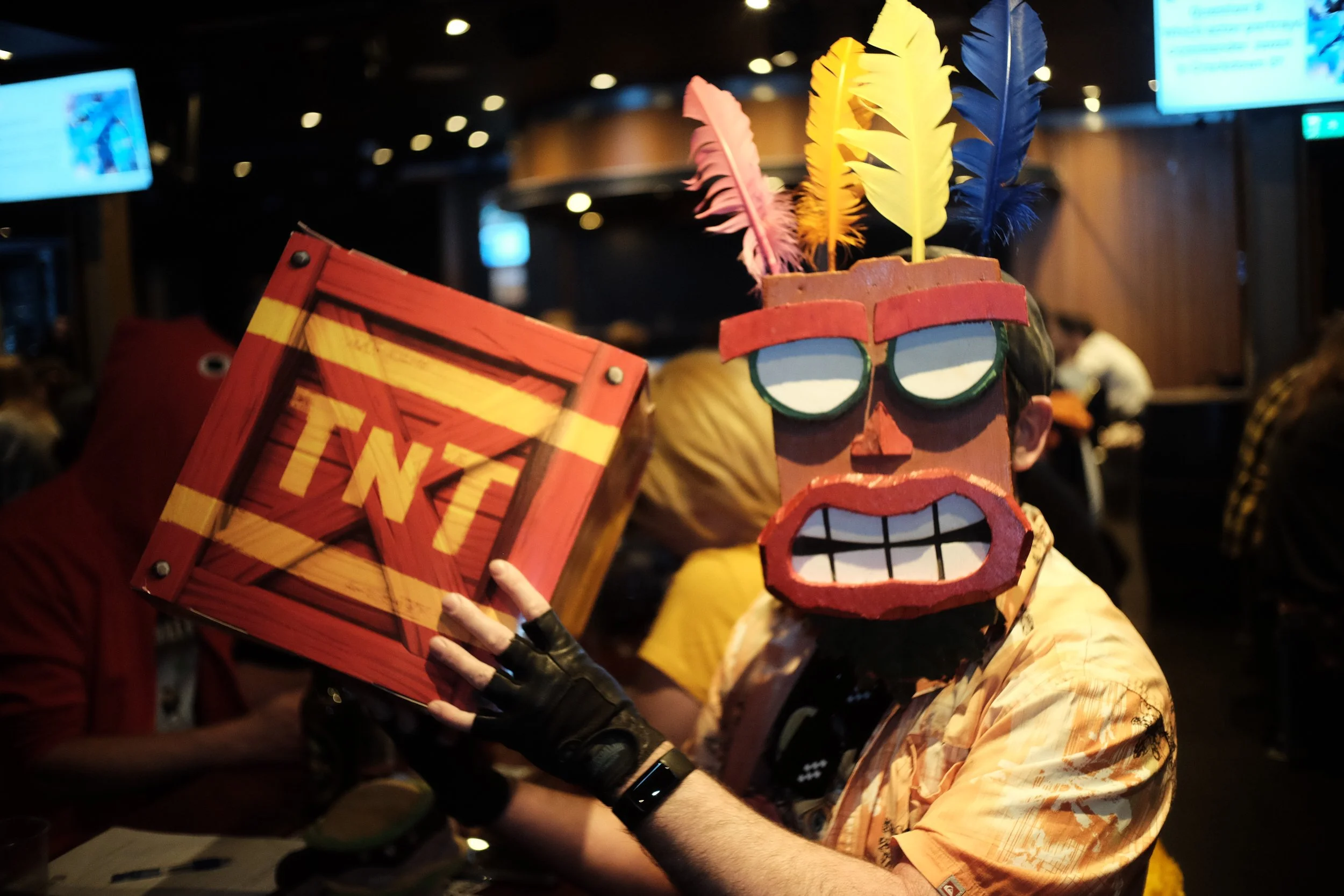 Cosplayer @agent.delta on Instagram shows us his Aku Aku cosplay during the Belfast Video Game Pub Quiz!